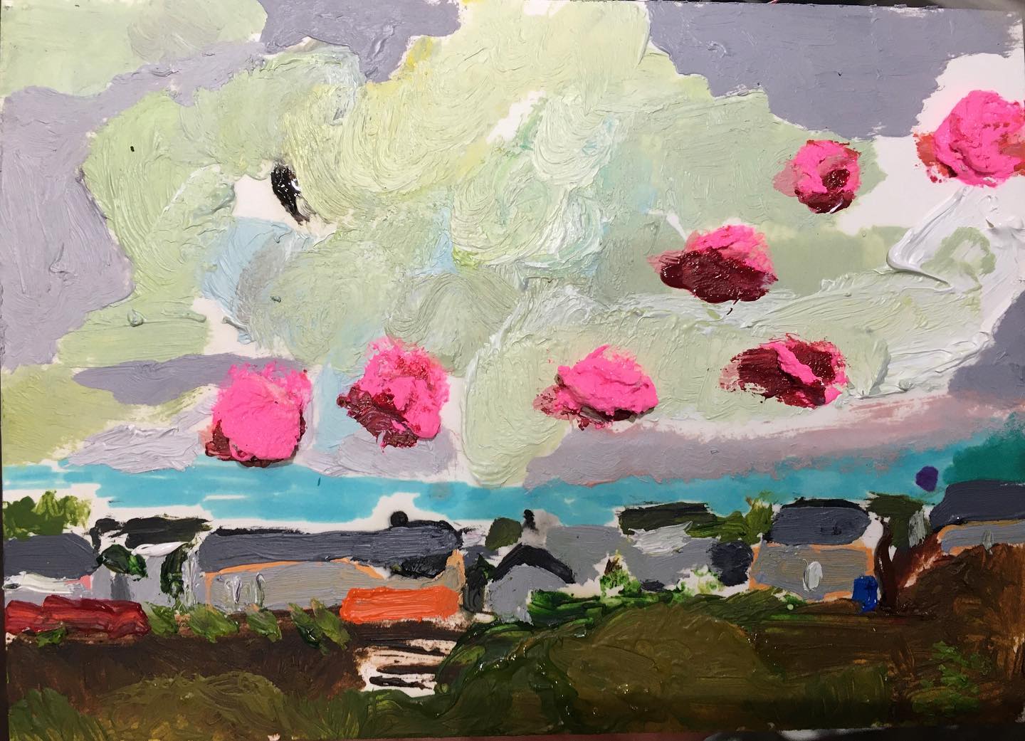 Every little painting is just an attempt to capture a feeling … Sometimes I’m out walking or driving in my car and some lighting on a tree or an unusual coincidence of colours hits me hard..and I just stop. When I’m driving this can be dangerous and my daughter has stories of close calls … The light late afternoon is the one I’m usually drawn to … I’m so happy when I find a more joyful full-sun scene that grabs me but it doesn’t happen as often. I think the morning light is the most beautiful but I have always been a night owl and have to force myself to see it. I’ve thought about how to describe that feeling I am after — and it’s some kind of contradiction of sorrow and hope.