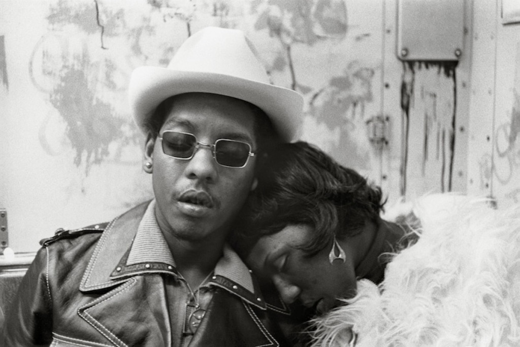 And still, Levitt kept photographing. Evans died in 1975. In 1978, the book Walker Evans: First and Last included twelve of his subway portraits. It was around 1978 that Levitt made her own return to the subway, a full four decades after that first foray. Sometimes she made purposeful shooting trips, but mostly she was carrying her camera on her way to somewhere else, from her apartment in Greenwich Village. She seems to have picked up exactly where she had left off in 1938, but in general her photography was less restricted, more in keeping with her looser street photographs. The camera’s point of view is varied, and the mood more relaxed. By the 1970s, public behaviour on the subway was much less formal, and the better cameras and film stock made it easier to capture. There was ‘elbow room’.
