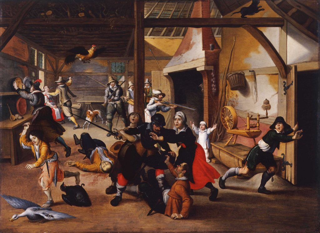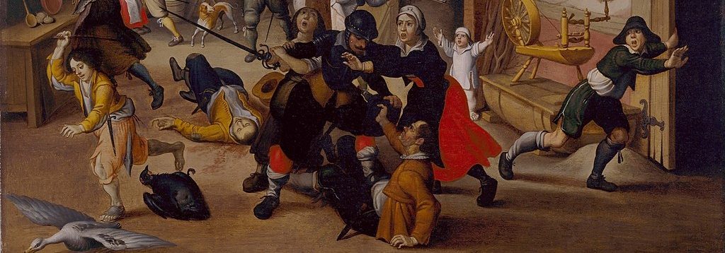 Mother Courage makes the distinction between wartime and peacetime morality. What insanity allows us to justify rape, pillage, or theft of scarce resources? What circumstance allows us to describe an act that we know is murder as “execution without trial?” Mother Courage’s son Eilif is pressed into service when her back is turned as she’s making a deal for a belt. Years later, as she’s trying to sell a scrawny capon to a regimental cook, she hears her son’s voice inside the general’s tent, where he is being lauded as a war hero. He’s massacred a group of peasants and stolen their cattle, all by using shady business tricks learned from his mother, and the general calls him a genius and says he’d like to have him for his own son. Years later Eilif is executed for the exact same action — he kills a peasant and steals their cattle. “They honored you for it in wartime, sat you to the right of the captain. Then, it was bravery.” Now it’s a crime, because during a very brief period of peace, the rules are different. Word travels slowly, however, and by the time the news of peace has arrived, the war is raging once again, though too late for Eilif.