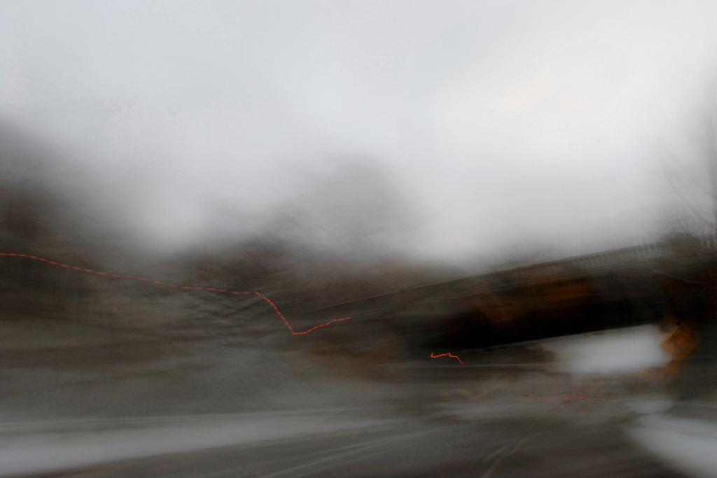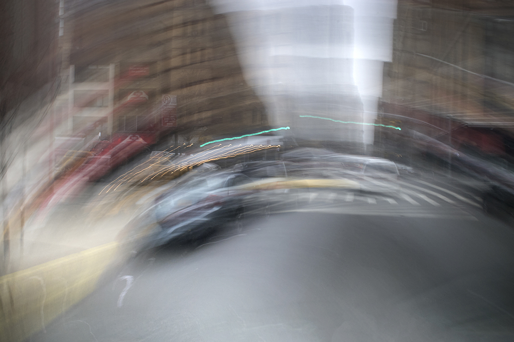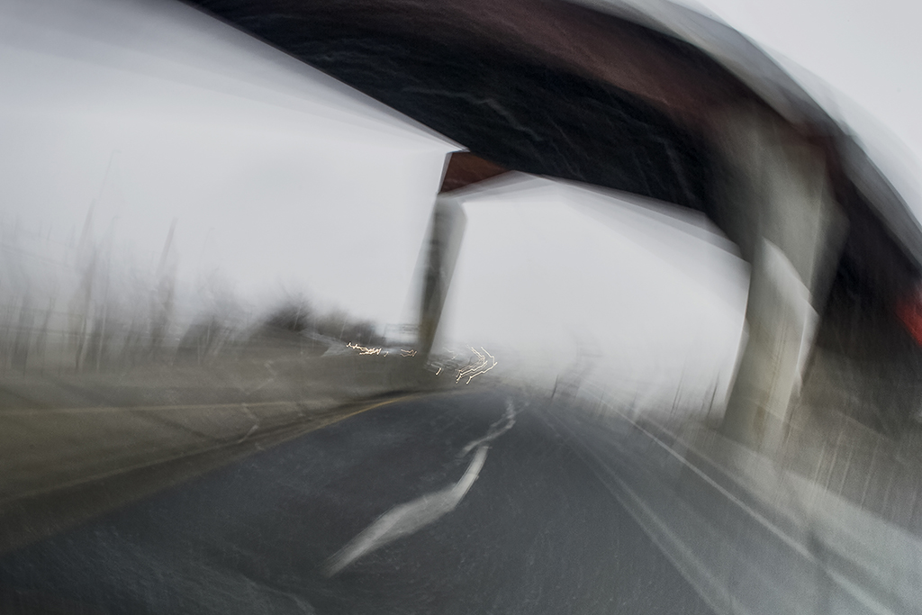 Traveling from the industrial Lehigh Valley of Pennsylvania, through sparsely populated western New Jersey, and into the cacophony of New York City, Commuter Motions is a photography series that develops from the experiential capture of an eighty-mile commute. By opposing the usual fixity of photography, the series attempts to capture the energy and movement of that commute using an almost Bergsonian approach, which through time-lapse, builds the images from segments of a continuous dynamic. These photographs are not about the specificity of a “decisive moment” but are more in line with the thoughts and theories of late 19th and early 20th-century artists, who were immersed in the concepts of perpetuity, fleeting moments, change, chance, and dynamism. Time surfaces as a fourth verity in addition to Robert Adam’s three: geography, biography, and metaphor, and it is that fourth verity that gives us not a moment, but a cross-section of a continuum. The typically narrow focus of our memory is substituted with an accumulation of peripheral visual memory, which creates images reflecting the gestalt of these movements, a gestalt that we perceive and experience but do not visually remember. Through this unusual form of capture, Commuter Motions frames the labyrinth of oscillating movements of our highways, bridges, and cities into photographs that reflect an élan vital of our daily commute.