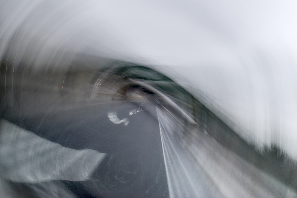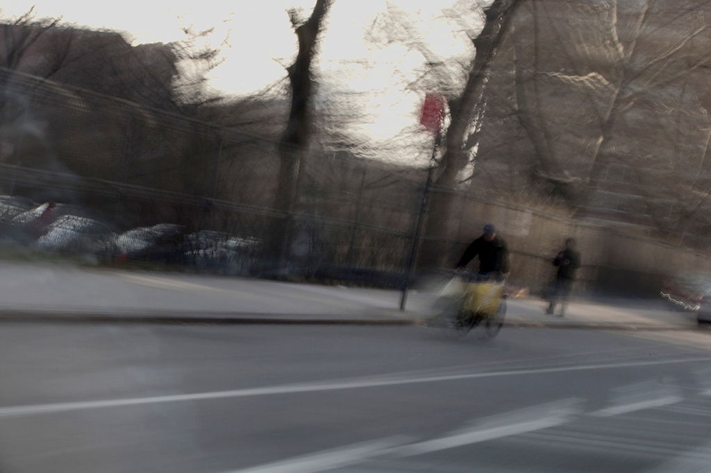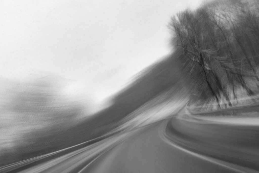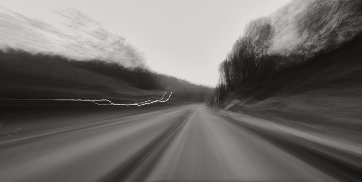Central to this form of capture is a technique that uses a camera fixed inside a moving object or on a person, as opposed to moving the camera independently of the photographer. Whether the camera is held in place within a moving vehicle or manually held in a way to follow the photographer’s gaze or head movement, this fixed approach embodies the photographer’s intention. The process is not intended to fabricate effects, but to authentically capture and preserve an experience – in this case, a commute from Pennsylvania to New York.