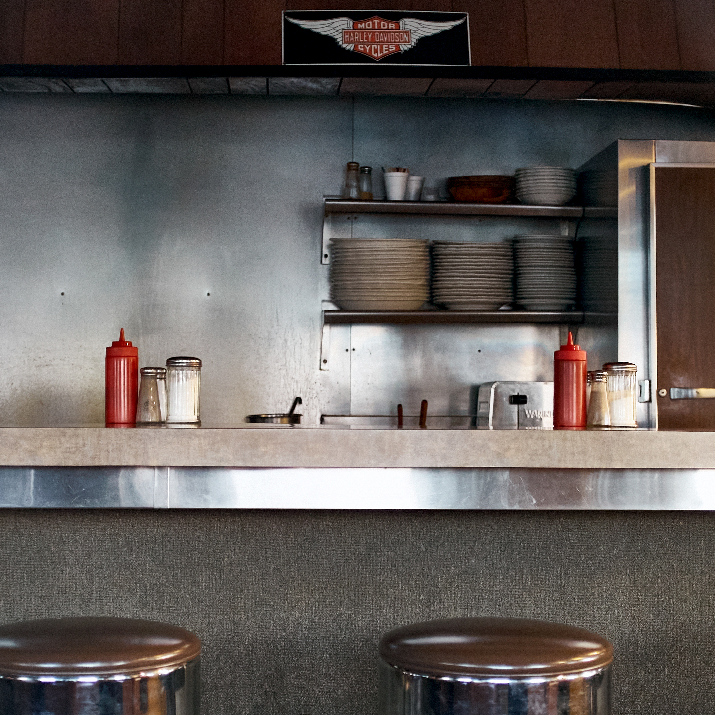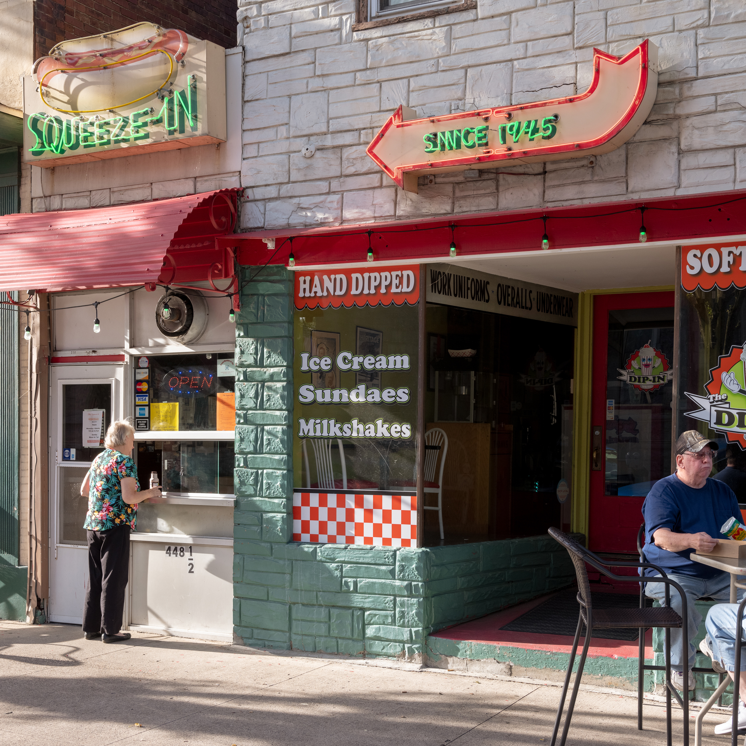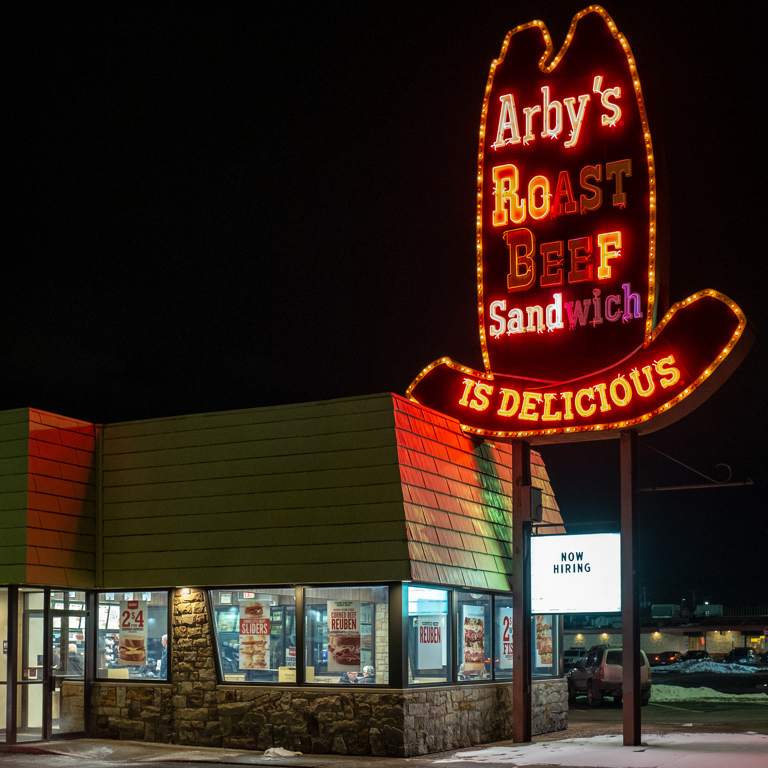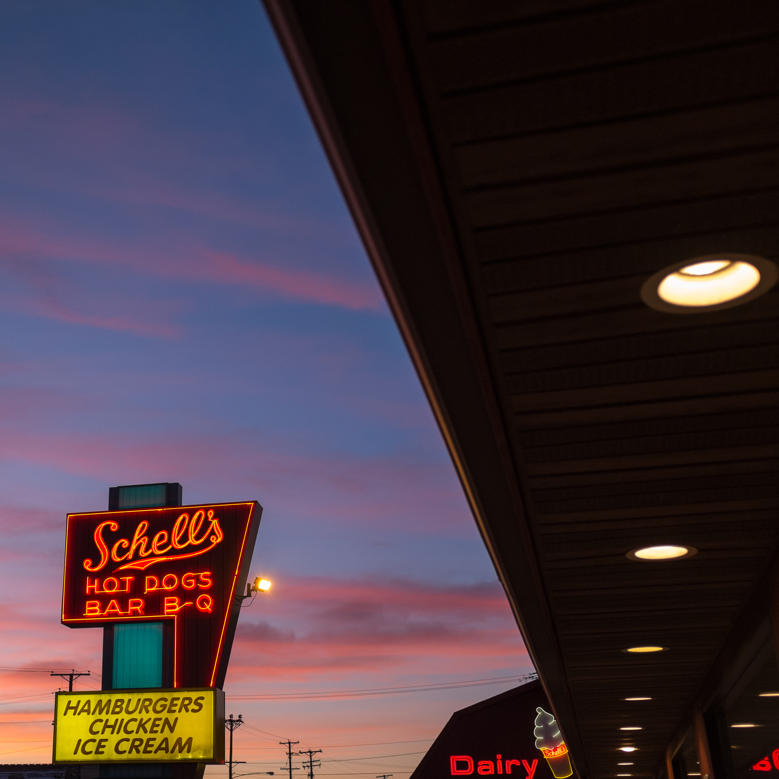 In the mid-thirties, photographer Berenice Abbott and her friend Elizabeth McCausland planned a trip to visit all forty-eight states and to produce a book which, in McCausland’s words, “could be the great democratic book, the great book for masses of people conditioned by reading newspapers and tabloids.” They never found the funding and the trip never happened. But their work and their ideal is being carried on in the work of photographers like Leah Frances. Frances’ work focuses on shared spaces — diners and bars and churches and ice cream stands — places we gather to eat, drink, pray, and talk to one another. Places we communicate in real life, outside of the modern-day tabloids that are internet chatrooms and comments sections. She finds these spaces in their off times, before shifts or after shifts or between shifts. Or their after times — long after people talked and laughed and lived there, when they are boarded up, defunct. There’s a hanging silence in the spaces, a grace in the light that catches in iconic chrome and Naugahyde and neon. These empty places are an expression of our shared loneliness, but they also radiate with a ragged sort of hope. When we share stories over lunch, when we sit and actually speak with one another, when we serve one another and clean up after one another, we realize how much else we share — every foolish wonderful needy kind despairing hopeful thing that makes us human. We see this in Frances’ photographs, layer upon layer upon layer of it. She captures the heavy warmth of nostalgia, both personal and national, and all the ways it sustains us and holds us back. She finds the poetry in it all. -Magpies