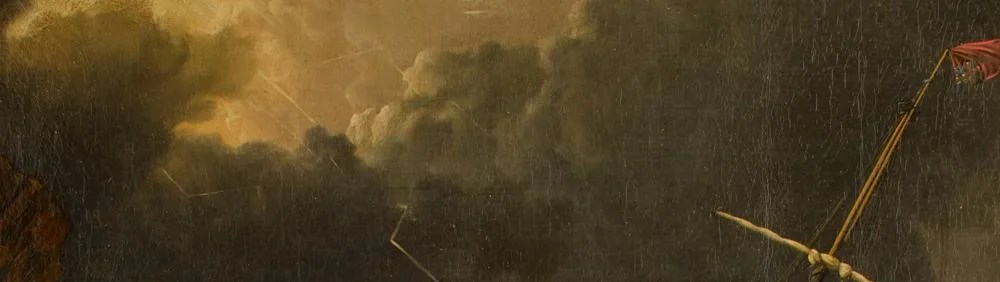 The fucking dog. Otherworldly now, shining strangely across the water in a light that is not there. And why is she here, now? How how? It makes no sense at all. So far from home. She’s soaked through, shivering, terrified of the lightning, shaking with every strike. But she’s fiercely frantically barking. She rushes to the edge of the water, snapping at it like she would eat it alive, swallow it whole. She’s yelling at him. With an angry tender vicious hurt wounded lifetime of pain. Howling mad. Will they go down together? How stupid to go down together.