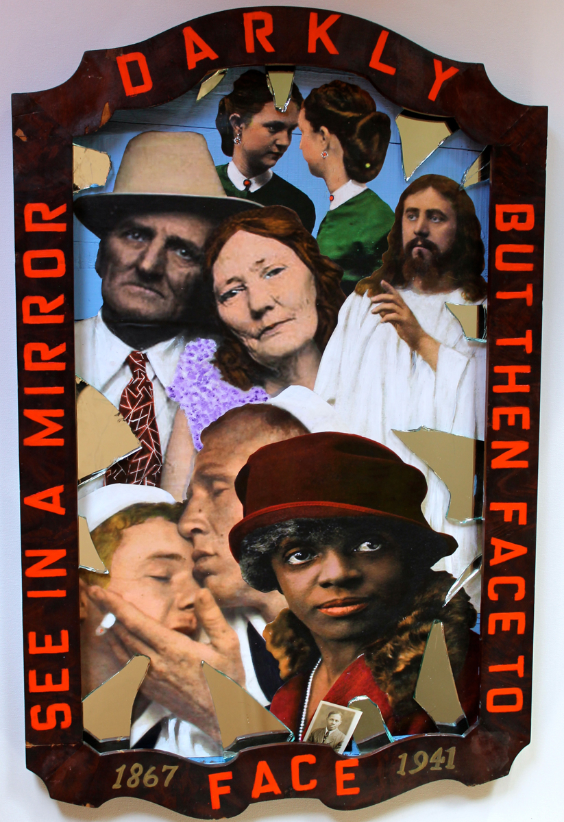 My use of found photos of complete unknowns has a particular emotional weight. In a recent large work made with cabinet cards, I have given each a name tag that says not “Hello My Name Is….,” but Hello My Name WAS…”I have made dead strangers a work of living art.