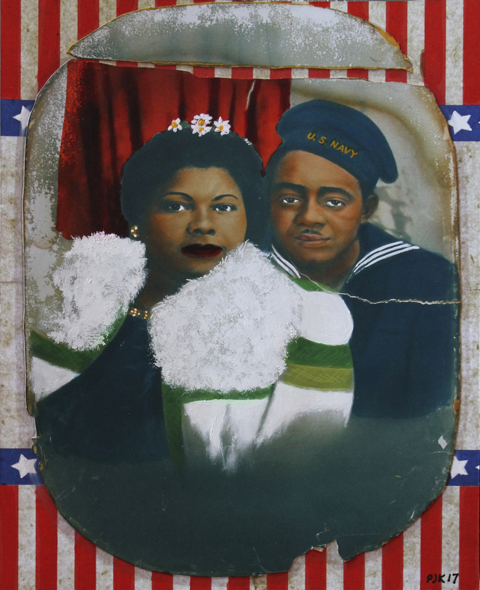 Trinkets are the unearthed fossils of lives lived. I have used a cheap brooch, an old debutant glove, rosary beads, Barbie and Ken dolls, sports trophies, a thrift shop bra,1870s love letters, mug shots, and hundreds of photographic images in my work. I do it because I am a sentimental slob and I do it because of the comfort in continuity and remembrance. People come and go but each trinket says, I was here and this is what remains. Each trinket resonates in us.