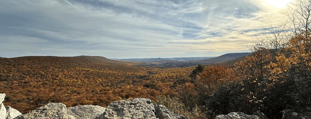 This piece of land contains a spur in the Kittatinny Ridge that looms 1,000 feet above the valley below. Winds, deflected upward by the ridge, buoy broad-winged hawks and other raptors on their autumn southern migration. Hawks rise slowly up, then pass just a few feet above the ground at the edge of the mountain. They’re in full, close view. A hunter can blast them out of the sky.