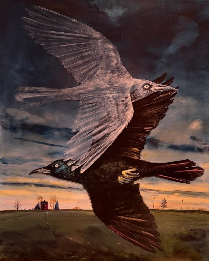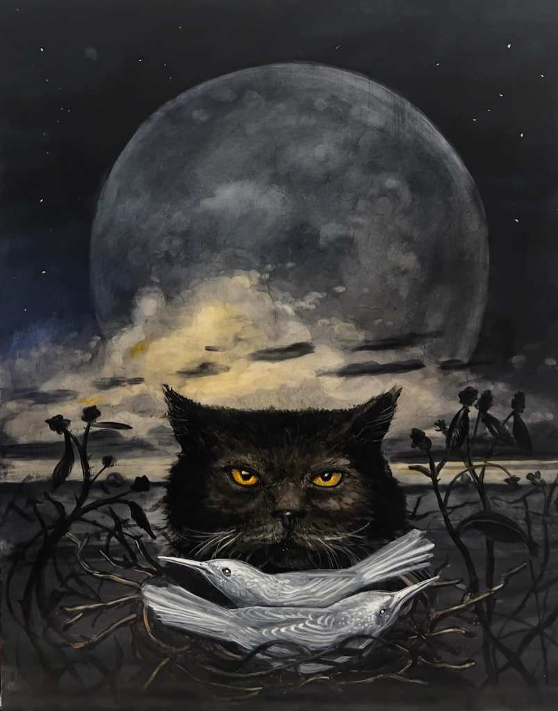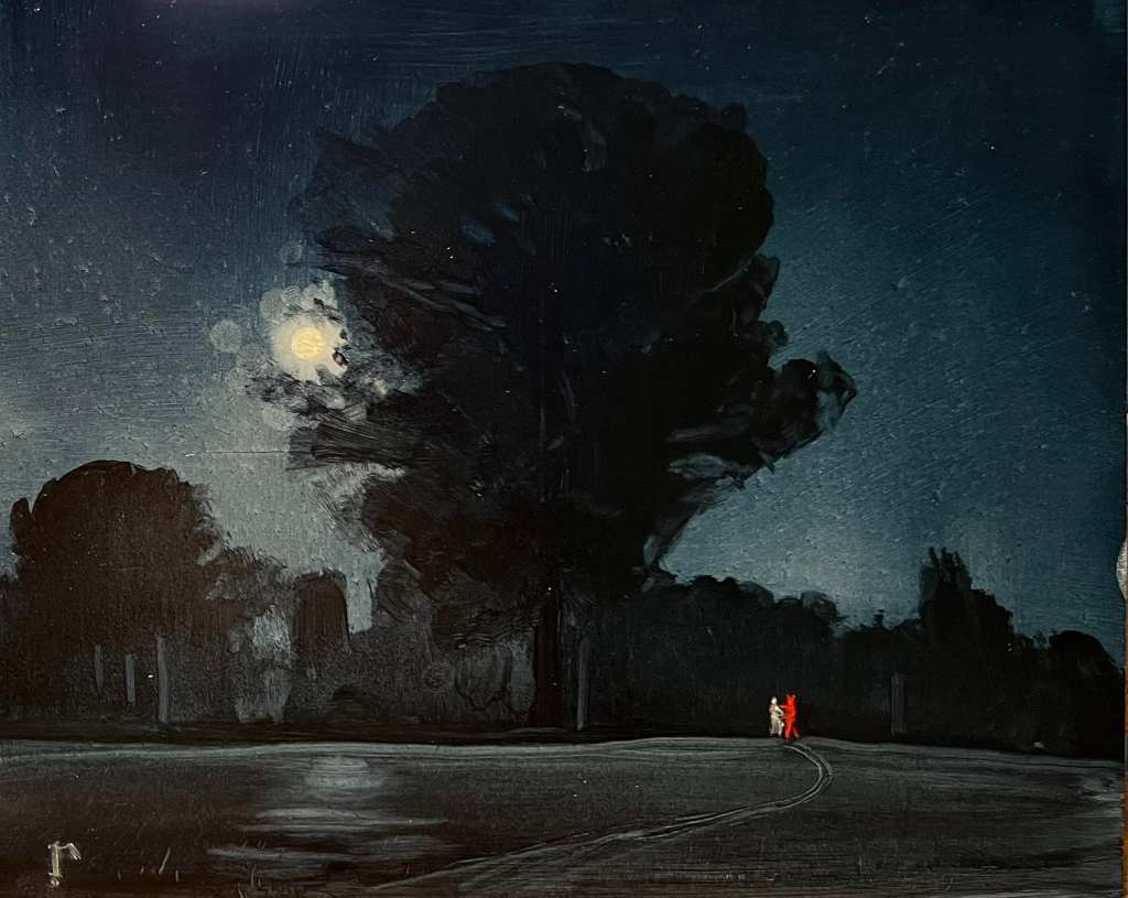 The first time I saw Rye Tippett’s paintings it was at a gallery I didn’t mean to visit. I don’t remember why we were in the town. I don’t remember why we visited the gallery. But I do remember the paintings. Beautiful and dreamlike, with a strange, strangely familiar light. A dark-edged glow — twilight, dream light, storm light. The paintings are deceptively centered but with a rack-focus that makes you question the way you view the painting and the way you view the world. It’s like seeing someone (or something) else’s dream of your own memories. His poetry has that same familiarly strange glow. There’s something in the poetry that feels cast off and yet meant to be. Rooted in the rusty earth and stretching to the strange light in the sky. The weight and lightness of memory. We are beyond honored to share these words and pictures.