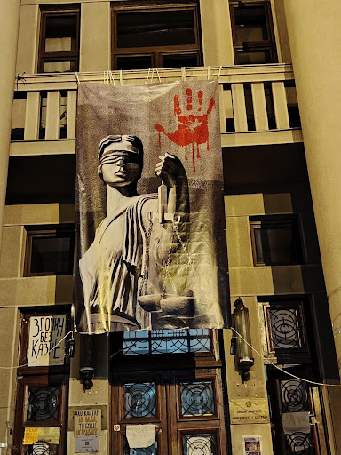 On November 22nd, students of the Faculty of Dramatic Arts (FDU), conducting a silent tribute to the victims of the November 1st collapse, were attacked by (allegedly) SNS supporters. Belgrade University comprises several faculties spread across the city rather than a single campus. As a result of the assault on the FDU students, the rest of the student body decided to institute a blockade of all the faculties scattered across the city, occupying the faculty buildings and bringing the academic year to a halt. Furthermore, on a daily basis, there would be 15-minute (now 16-minute) silent vigils held across the city at crucial points in the road system, disrupting traffic flows.