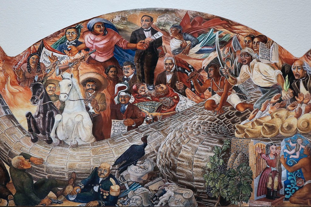 In tune with most of the artists of the Mexican School, she was concerned with the representation and interpretation of the different stages of national history, and with the celebration of the customs and beliefs of the Mexican people. In her last mural, The First Meeting (1977-1978) in the Delegation of Coyoacán, Mexico City, she focused on the dramatic impact of the Spanish Conquest on the native population. In some of her easel paintings she emphasized the fight for Independence, and in other works, such as Scenes of the Revolution (1935), she concentrated on one of the most recurrent themes of the Mexican School, the Revolution of 1910.