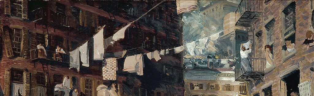 “Now, on a Sunday morning, most of the windows were occupied, men in their shirtsleeves leant out smoking, or carefully and gently held small children on the sills. Other windows were piled up with bedding, above which the dishevelled head of a woman would briefly appear. People called out to each other across the street, one of the calls provoked a loud laugh about K. himself.”