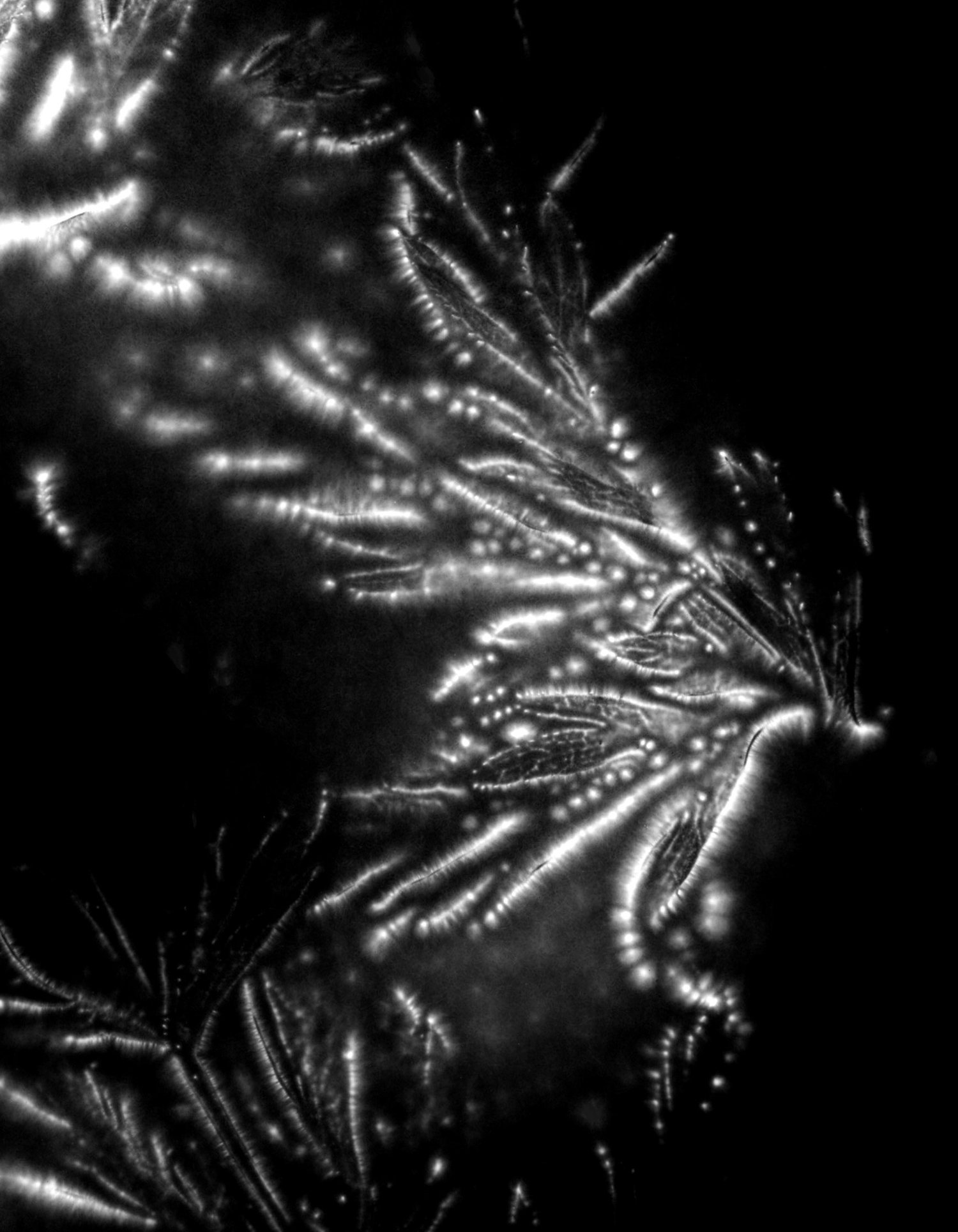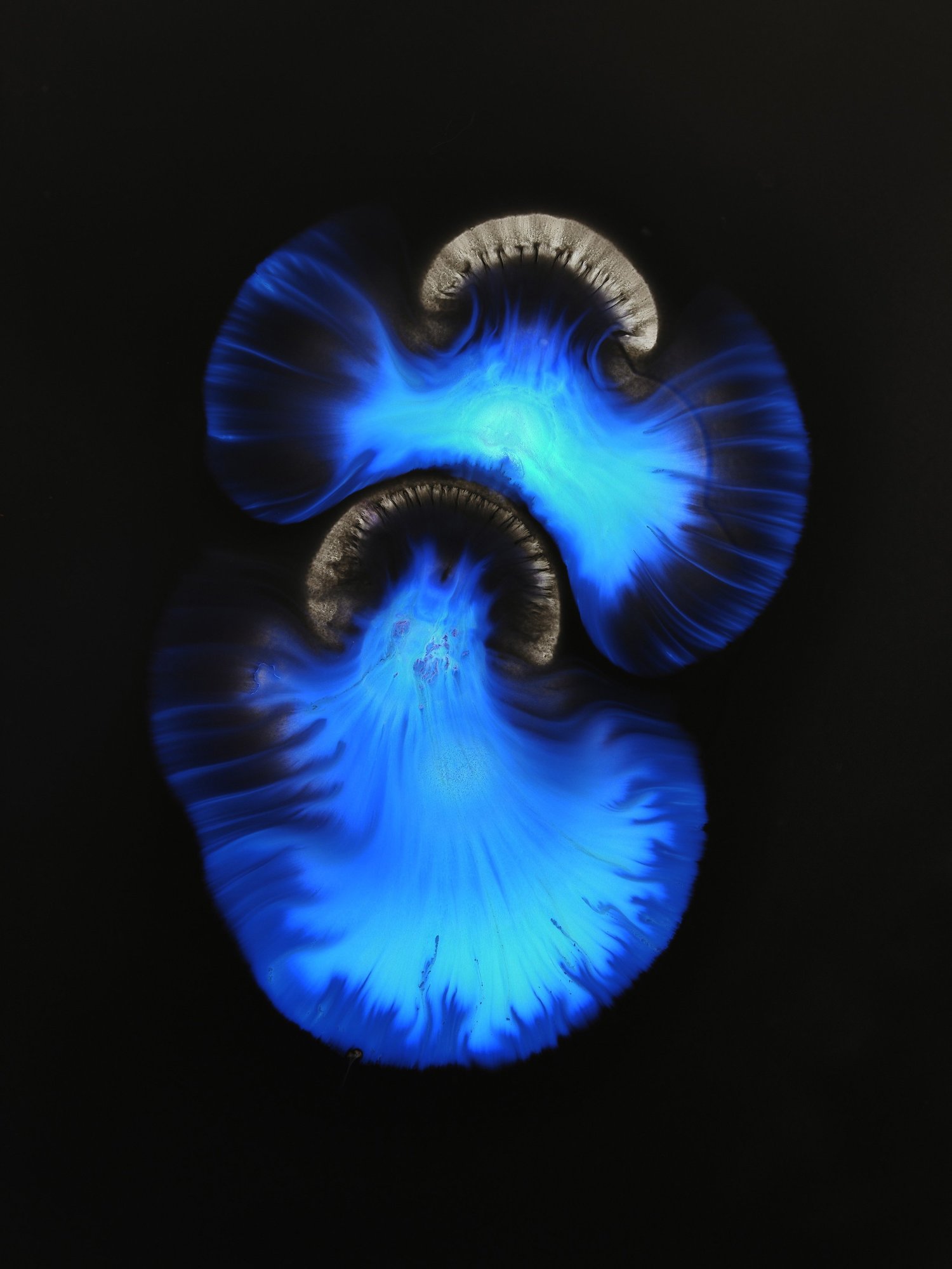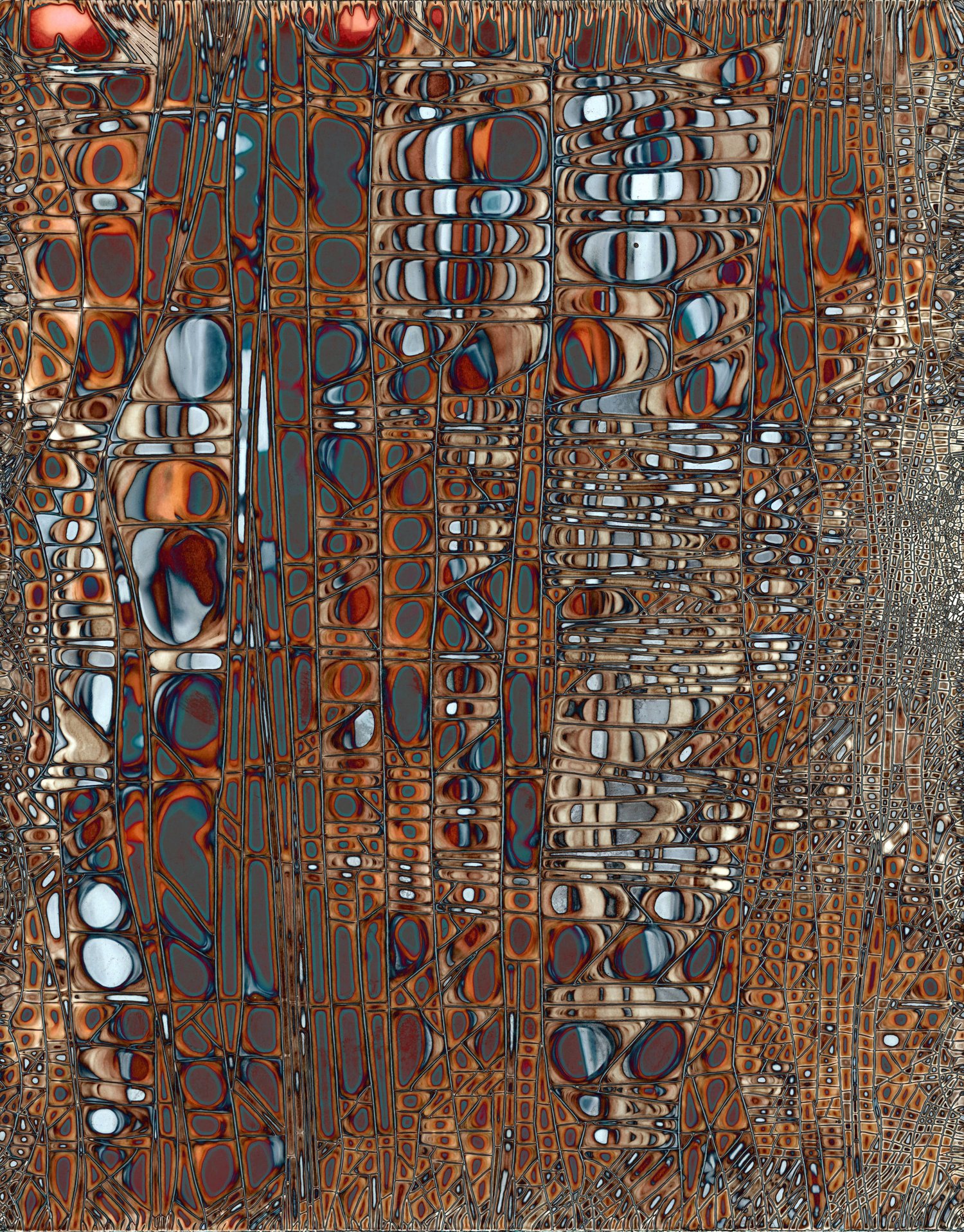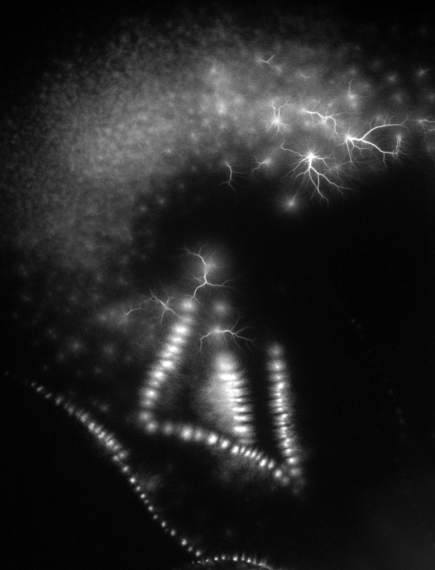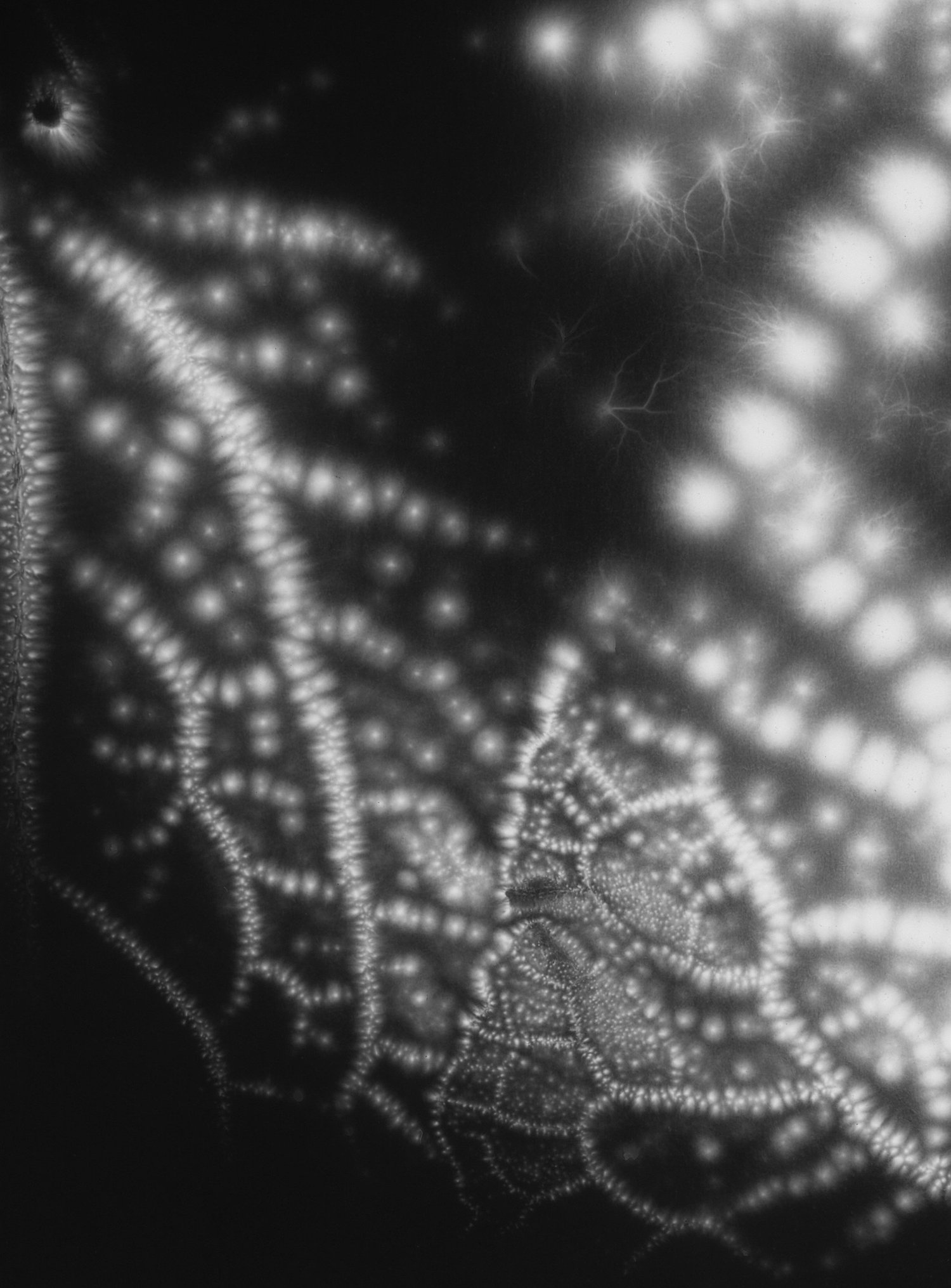 I’m a longtime believer in the idea that everything is connected on some level that humans will never understand, though we like to think of ourselves as being so savvy about everything around us. So much about your work seems to be exploring deep, recognizable, but very rarely visible connections between the inner and outer patterns of all life and the universe. The cells in a leaf or in our body, the sparks of energy flowing through our bodies and through the universe. I wonder how much you’re creating the images, and how much you’re revealing and recording a visual representation of a universal truth. Illuminating it, literally, since you’re painting it with light.