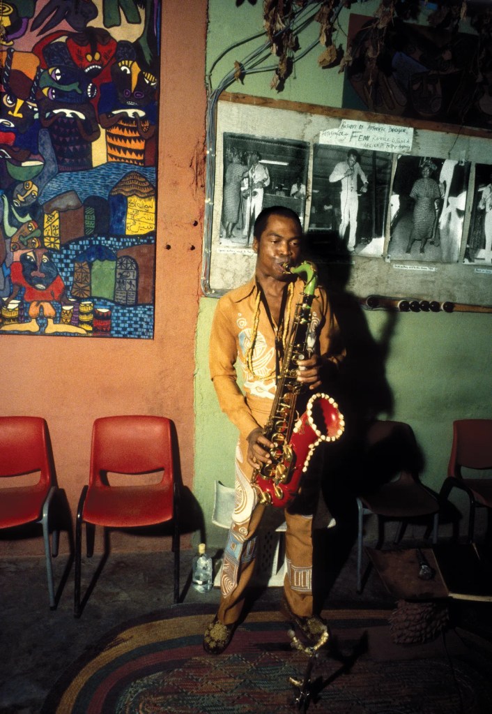 A scene in a video from the 1980s. On the big, green sofa sits a thin, sallow man in panties, his upper body bare, his hands splayed out before him in a relaxed posture. On his right hand, there is a joint which he brings to his mouth from time to time, inhaling deeply and blowing out wispy coils of smoke. He looks about him, smiling occasionally at no one in particular. He seems a little weary, too, as if he finds the act of talking a great effort. His posture shows he wants to be alone. All around him, many women and young men are walking to and fro, engaged in all manner of activities. But Fela Anikulakpo Kuti, the leader of the pack at his Kalakuta Republic residence—a quasi-socialist setup that also houses his dozens of women, band members, and disciples from all over Nigeria and the rest of the world, who come in and stay on—seems tired and weary, not wanting to talk.