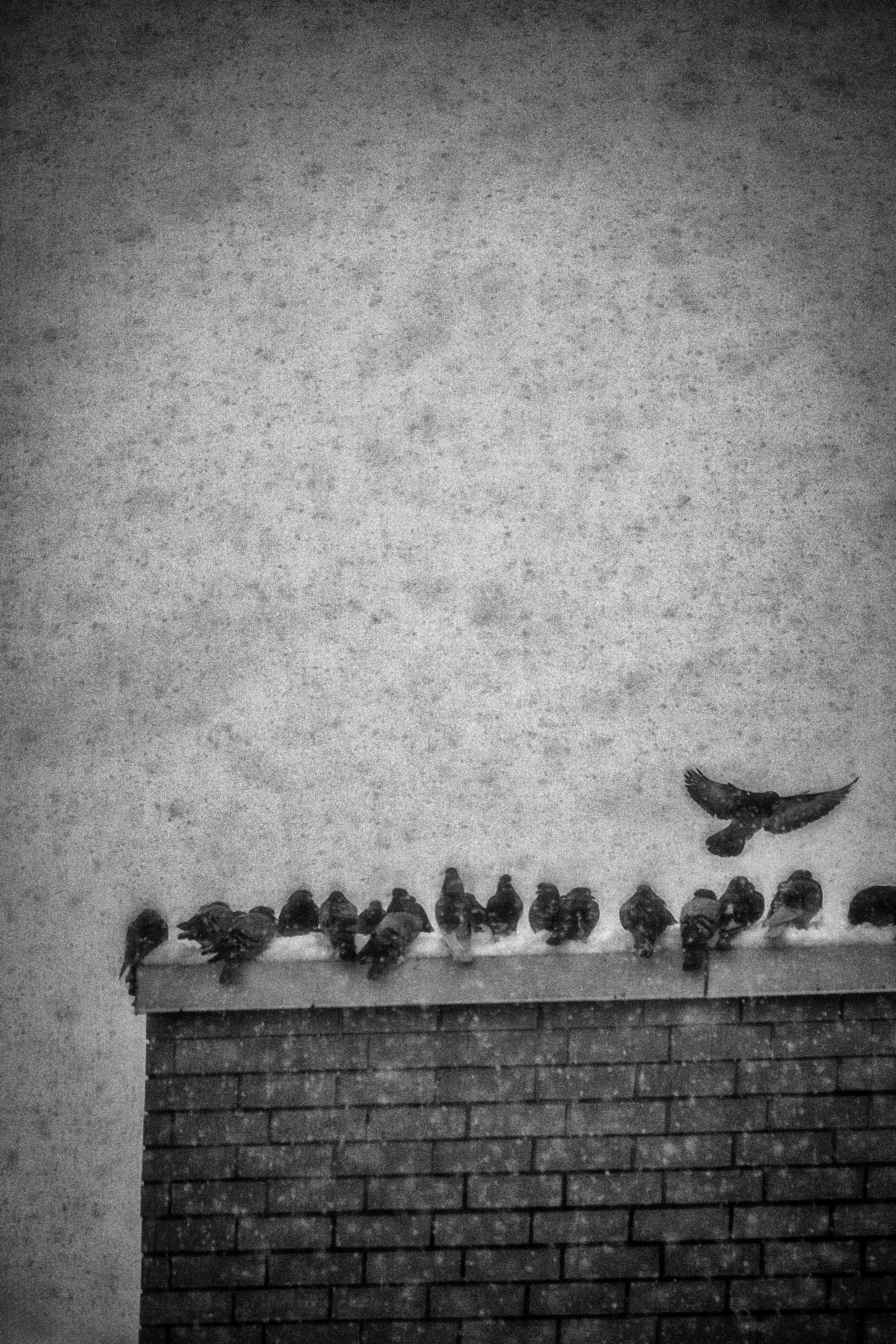 As the years have passed, the cast of characters has changed. The pigeons who were once regulars are no longer there. Some have simply aged out, others likely fell victim to predators or cars or the quiet hazards of urban life. New pigeons have joined in, and though they look almost identical at a glance, each has its own way of moving, its own presence. It has made me think about the continuity of community — the way one generation overlaps with the next, creating an unbroken thread even as individuals vanish.