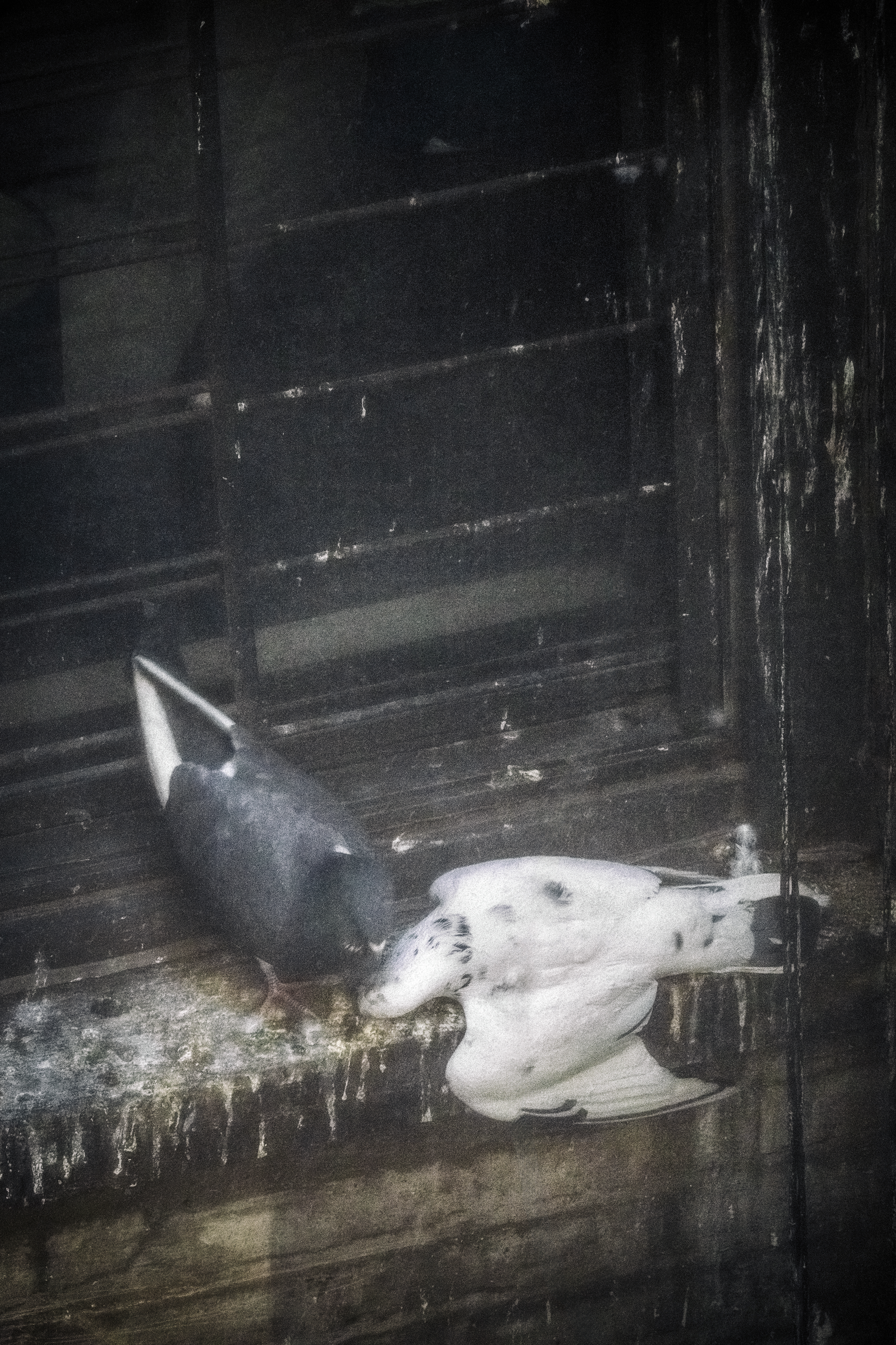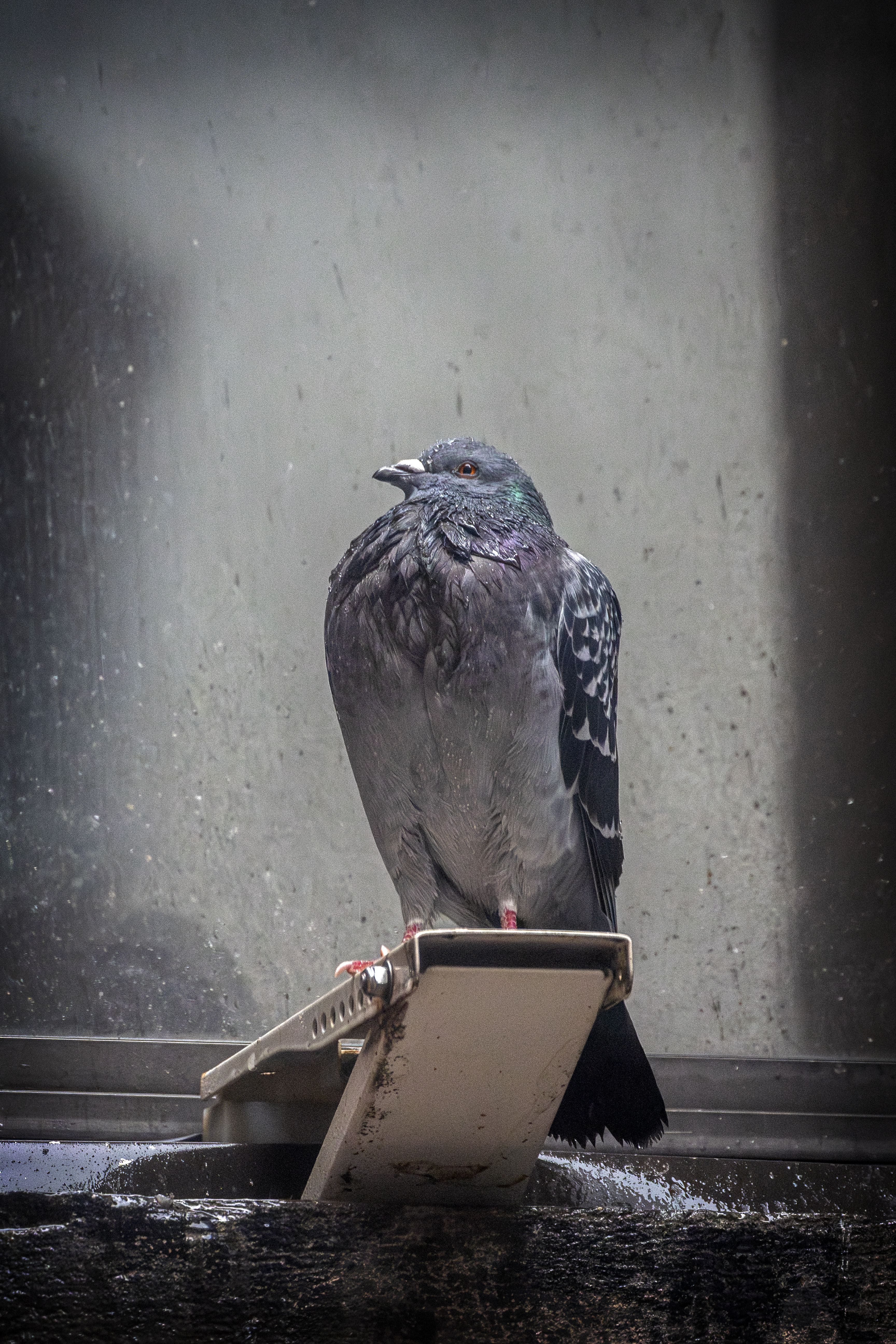 During the early months of the COVID lockdown, when the world fell into a kind of forced stillness, my wife began to feed a pigeon couple who had taken up residence in the alley between the buildings outside our kitchen window. It started simply: two pigeons, perched on the windowsill, watching the world go by as though they had claimed this patch of brick and metal as their kingdom. At first, they were almost invisible, blending into the dull grayness of the alley, just another part of the urban background. But the moment she placed birdseed on the ledge, they transformed into characters with their own routines, their own personalities, their own dramas.