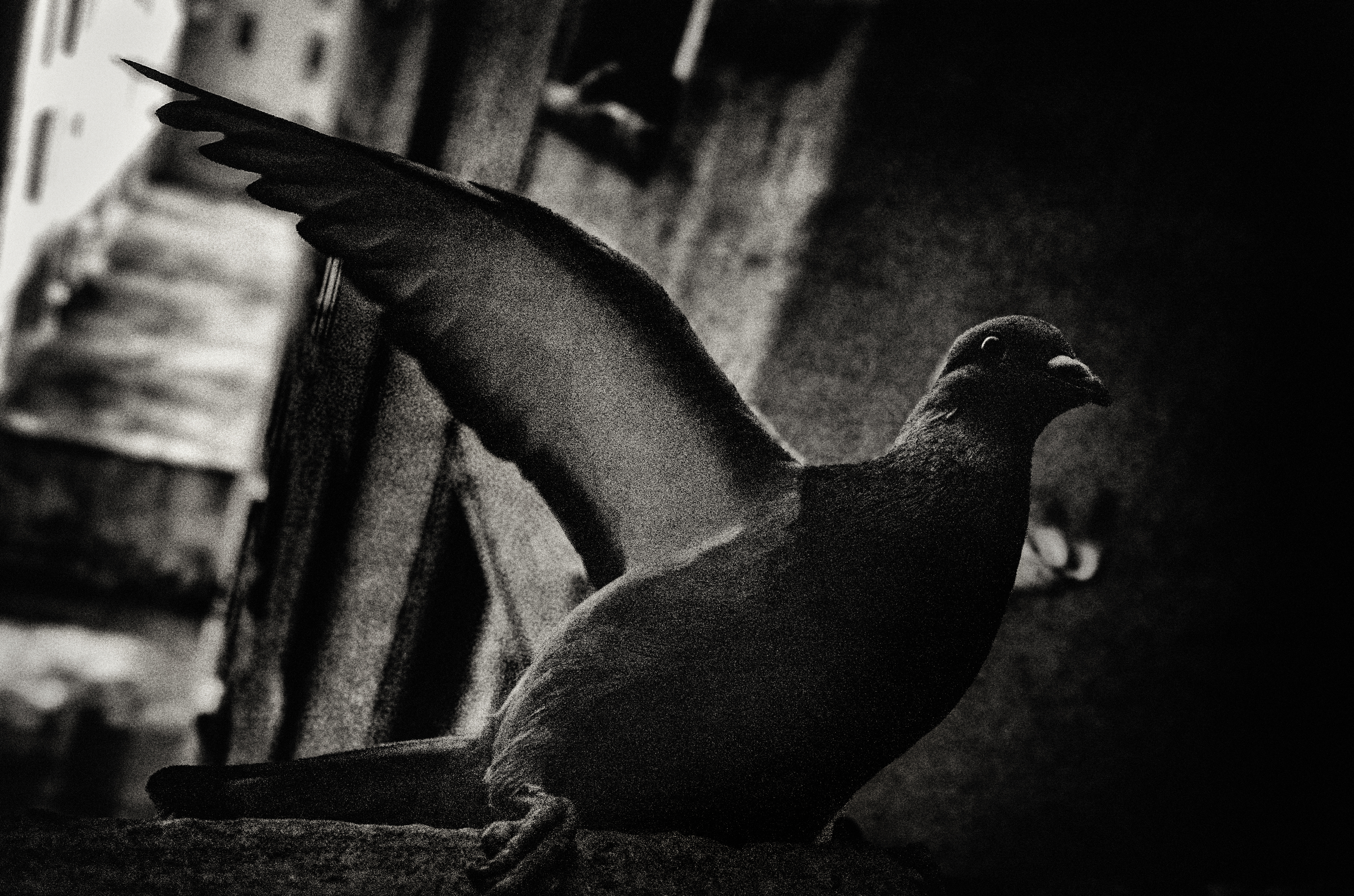 Over the last five years, I have continued to watch them. The feeding is now a ritual, not just for the birds but for us as well. It has become an axis of time: the day begins when the pigeons arrive, and it moves forward as the sparrows dart in and out. I have seen nests being built, twigs carefully carried in beaks and arranged in precarious piles wedged into the brick crevices of the alley. I have seen hatchlings emerge — fragile, uncertain, and then suddenly strong. And I have also seen death. Some pigeons vanish. Others return with injuries, broken wings that never heal properly, missing toes, eyes clouded. In time, they too disappear, and I can only imagine that they met their end somewhere in the city, unceremonious and unremarked. Life in the alley is unforgiving, and yet it continues.