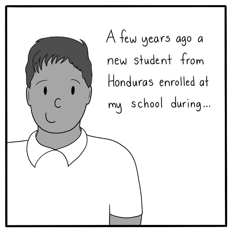Amy Joust (she/her) is an author-illustrator who studied creative writing at the University of Maryland.  For over 15 years, Amy has taught English to immigrant children and children of immigrants in Baltimore public schools. Her comics are inspired by the children of Baltimore: her students and her own two kids. In the late 1980s, a local study claimed that, “in Baltimore, there is rot beneath the glitter.”  Through her comics, Amy aims to show that there is also glitter beneath the rot. See more of her work on Tumblr and Instagram.
