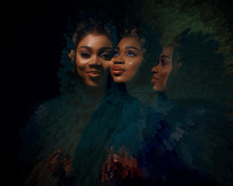 Ifeoluwapo inverts the very idea of the self-portrait as a means to explore identity and emotional well-being. Here, the focal point is not her, but her subject, whose identity she atomises in pixels. Ifeoluwapo applies this method because her work goes to the heart of what it means to be a woman in a world in which a woman has to conform to different roles within and outside the confines of what she calls home. The multiplicities that come from the taking of several photos of a subject in the same way creates islands of such self-reflective duplicities. We see this in the first of Ifeoluwapo’s “selves” photos.