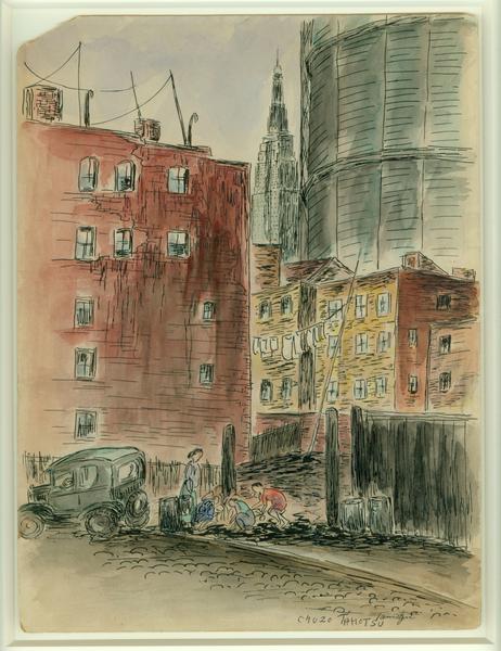 In December 1920, Tamotsu moved to New York City and settled in Greenwich Village. In the two decades that followed, he pursued a career as a painter there. Like many Japanese immigrant artists, he entered the circle of painter Yasuo Kuniyoshi, and both Tamotsu’s art and life reflected Kuniyoshi’s powerful influence.