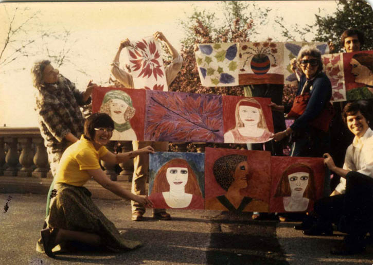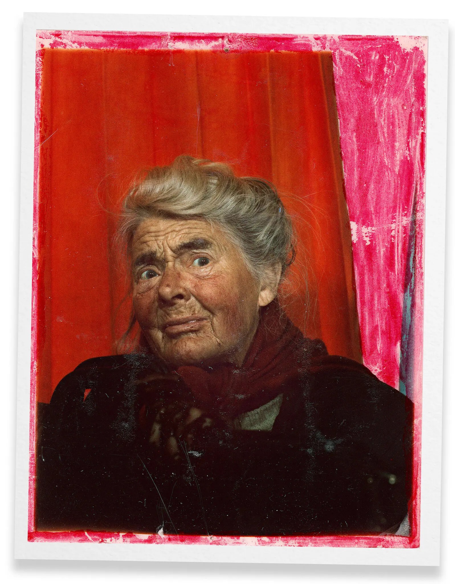 When she reappeared in the ’60s, as her legend goes, she was sitting on the steps of the Art Institute of Chicago, selling her art and calling herself a French Impressionist who was better than Cézanne. She claims that a little red bird told her to pick up a brush, and for the rest of her life, everything about her became a part of her art. She made art from objects found on the streets of Chicago — pillow cases, broken car windows, old boxes — other people’s trash. She dressed in clothes pieced together from bright swatches of fabric, and wore a fur coat cobbled together from other fur coats. She sang and danced to attract customers, and teased her canvases by unrolling them slowly and then folding them back up. Buying a painting from her was an experience in itself. You had to track her down in her usual haunts throughout the city, and depending on her mood, your clothes, or the day of the week she might entertain you or turn you away entirely. She priced her paintings around $50, but on the back she would write their true worth — in the tens of thousands. And strangely, that’s what they might sell for today.