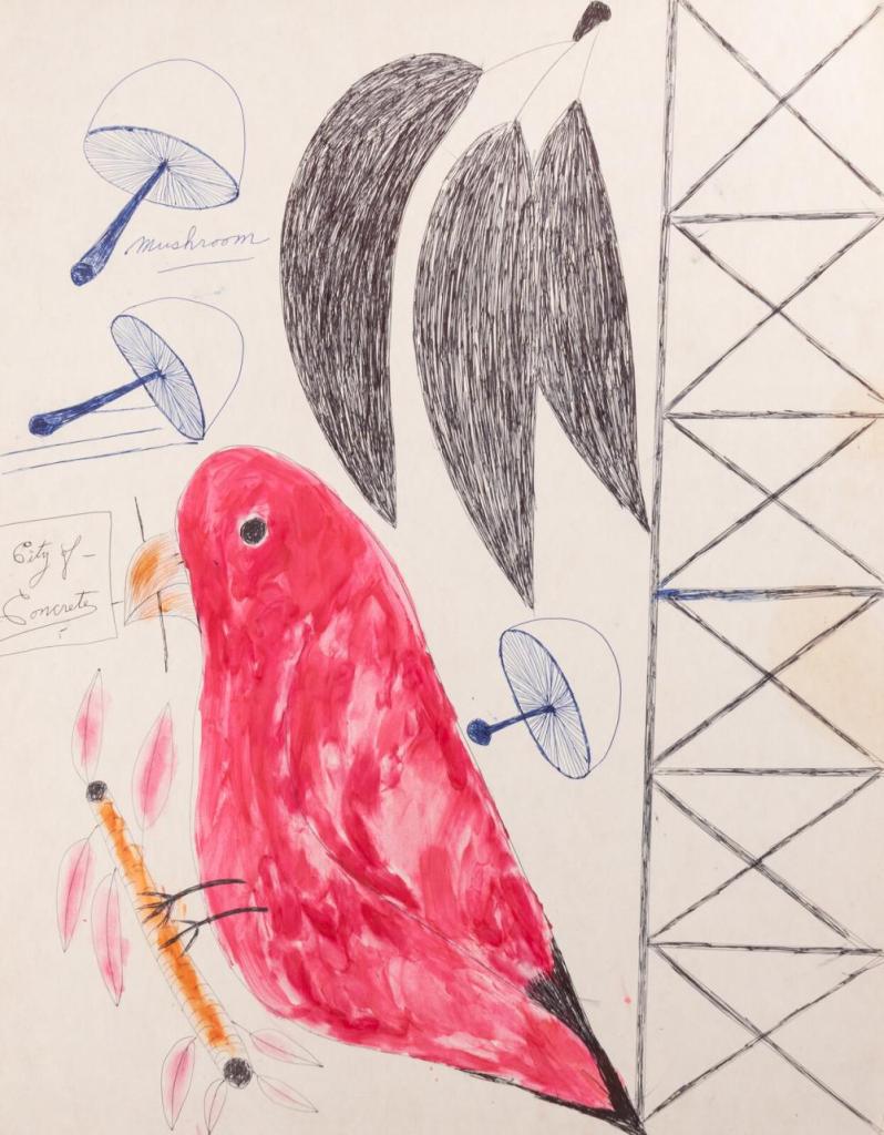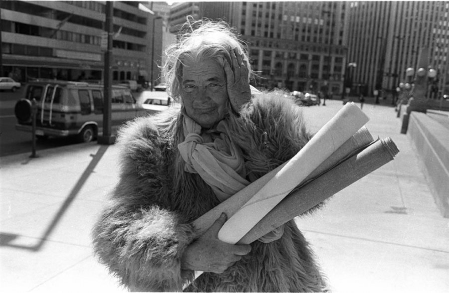 Although she supposedly had money, she lived for many years without a home, sleeping on benches in the park, even in the coldest of Chicago winters, entertaining people in cafés or the lobbies of fine hotels. But in a way, all of Chicago was her home. She loved the city, and she would write paeans to Chicago on her paintings, though she would have seen the worst of it in her struggle to stay alive. She created her own art scene on the streets of Chicago, a world that was strange and wildly, carefully curated, and she reigned there.