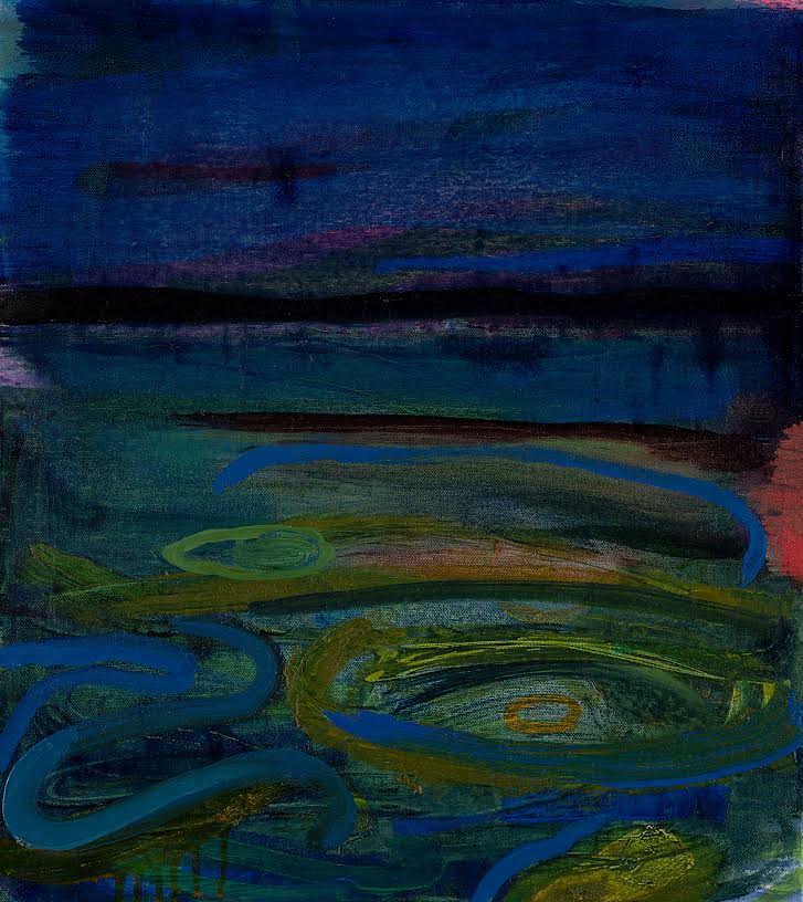Yes for certain water is everything to me! I am an aquarius and have Minoan waves tatooed on my left arm. The flow of a painting is what I hope to achieve, being in that flow. It is much like fishing on the beach or on a lake. You are in the landscape, a part of it. There is mystery there, what lies beneath, and with the almost invisible line you are trying to connect with it. I often improvise when I paint, trying to see what image emerges as I work. Time and time again it is a lake, an ocean, a pond. These bodies of water have always been completely fascinating to me and never tire of looking at them. Fishing for me is as much about looking and being near water as it is about actually catching a fish.