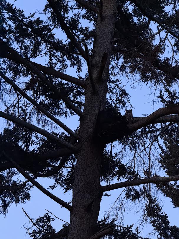 I began to look for the nest casually, walking in the coniferous area where we had seen the owl, with little expectation. The truth is that while I am an excellent bird listener, I am hopeless at finding them in the landscape. But no matter, hearing the calls was enough.