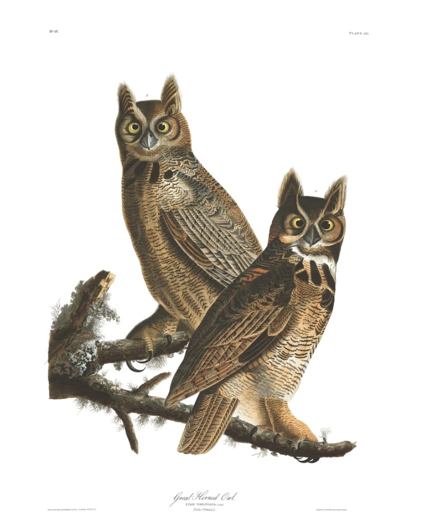 Great horned owls have a territory of over 1.5 -2.5 square miles, so if you see an owl in an area where you have been hearing owls sing, this is most likely the same owl (or its mate). This fact makes me incredibly happy. It feels like you are making new friends, getting to know a pair of owls—unlike, say, when you see a chickadee—where you don’t know if you are seeing the same chickadee, or the millionth chickadee—with owls, you actually have the opportunity to get to know the individual, in the brief moments when they are awake and there is enough light for you to see them.