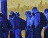 The recurring faceless figures that can be found across his paintings attest to the felt anonymity of the system we are all a part of.